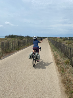 We stopped for a quick dip in the ocean before reaching Agde (ok our feet dipped in the ocean, like I mentioned we did have some clouds on the first day). After a quick lunch break at a boulangerie and a few stray drops, we tackled the second half of our day.