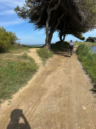 Our last leg of the day was through the étangs de Narbonne which had us biking on a little dirt strip in between the sparkling, cerulean sea (yes, for real this time!) and the ponds and lakes closer inland. It was jaw-dropping to say the least, and I had my phone out probably like half of the time trying to capture the moment. (The other 50% I had a death grip on the handlebars as we were back on a bump, bump, bumpy gravel road as we rode alongside the train tracks).