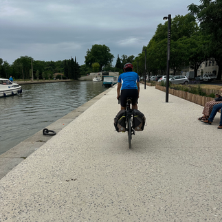 We biked through cute little towns, along canals and next to farms before we reached Béziers, which turned out to be the perfect stopping point as it started to rain!
