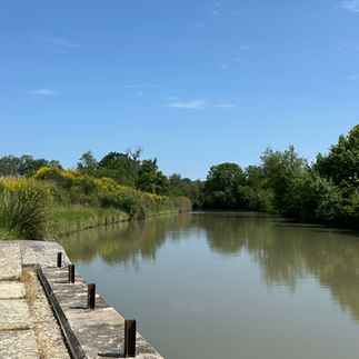 After a great night sleep (and the included breakfast in our chambre d’hôtes) we were ready to set off, in the sunshine this time! Because Capestang was right along the Canal, it was super easy to find out way back to our path. The first few kilometers were a little bumpy but nothing compared to the day before. Plus the sun shining and our quaint little path along the Canal put both of us in a great mood.