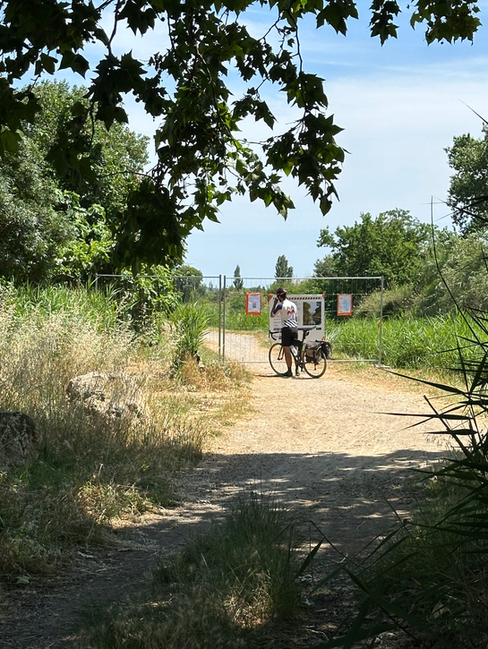 Our apéro improvisé had us feeling a bit hungry, so after our break, we headed back out along the Canal to our first stop at Capestang. And this, folks, is where the trip got interesting with some questionable trails along the Canal. When I say we were bumped around, there were only about 10 kilometers of tricky terrain, but it felt longer than the whole day of biking (especially for my hands and butt!).
