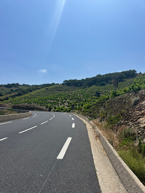 And up we went! We finally ended our relatively flat journey and headed to the hilly section along the coast. La route de cols really did live up to its name and it was almost nice to have a change of pace (maybe my legs would disagree with me). But as we climbed, we could look to the left out at the sea and to the right were loads of vineyards and vines. Picture perfect. Again.